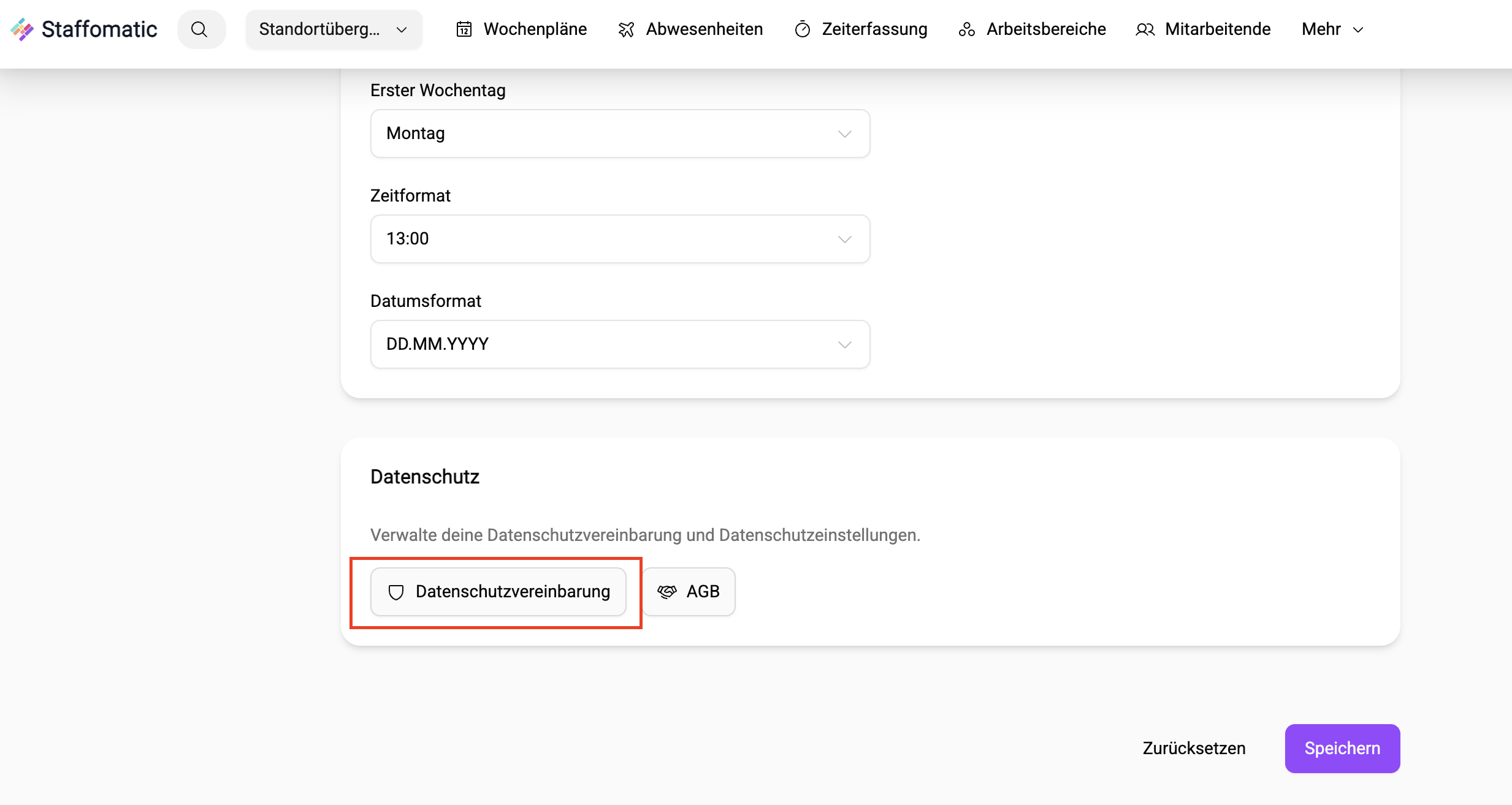 Ausführliche Informationen und ergänzende Details stehen ebenfalls online zur Verfügung: Datenschutz bei Staffomatic