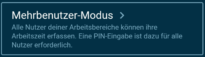 Dadurch wird freigeschaltet, dass die Login-Daten der Mitarbeiter auch im Terminal funktionieren. Wenn sie den Einzelbenutzermodus auswählen, können sie dort nur ihre eigenen Zeiten erfassen, dafür ohne PIN.